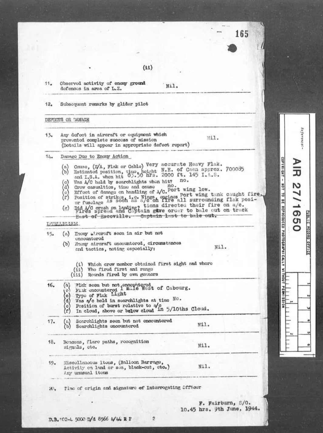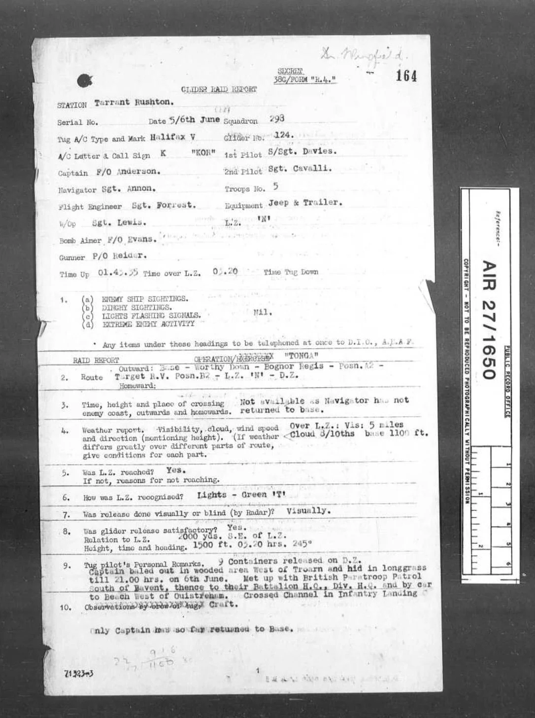 All the crew were recovered by the invasion force of British Airborne forces later that day, Flying Officer Anderson was back at Tarrant Rushton on June 9th to provide his story to the debriefing officer.