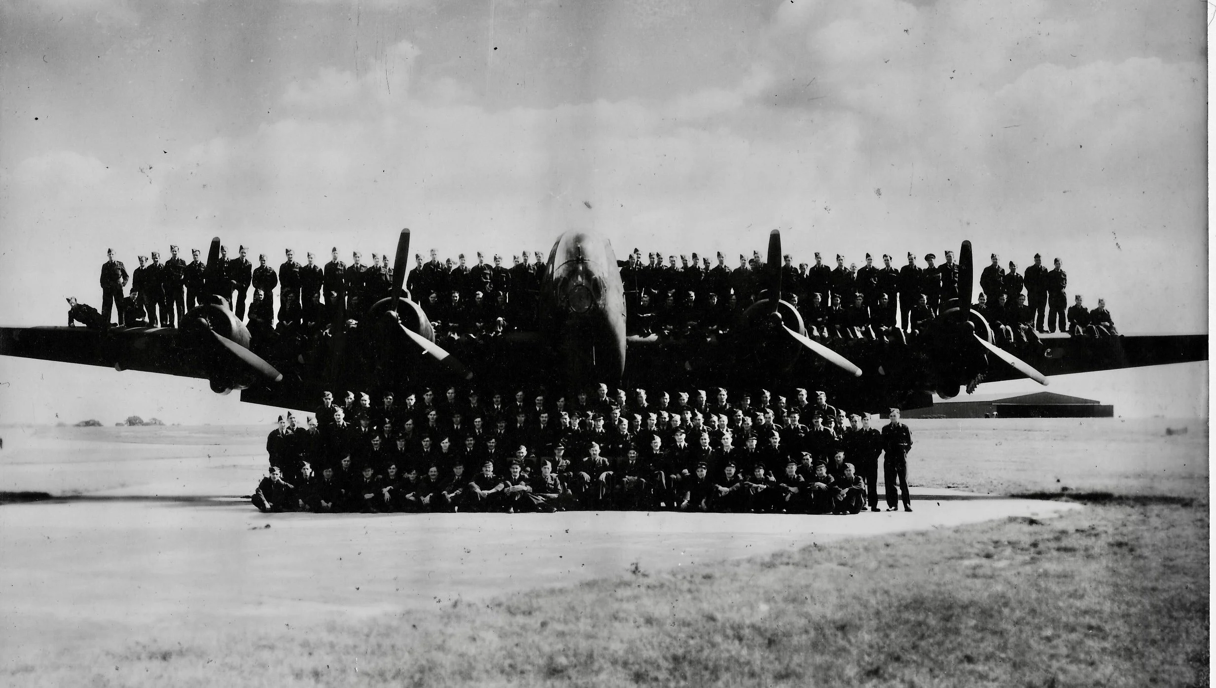 One of our last veterans who served at Tarrant Rushton in 1944 has passed on at the grand age of 102. Flight Sergeant, later Flight Lieutenant, Duncan Forrest was a Flight Engineer on the Halifax tugs of 298 squadron. His time at Tarrant must have been like many of the aircrew related as veterans, “the time of their lives”. Here he is, circled from that wonderful “school photo” of 298 Squadron, taken after D-Day in July 1944, the entire squadron proving just how durable was the Halifax.